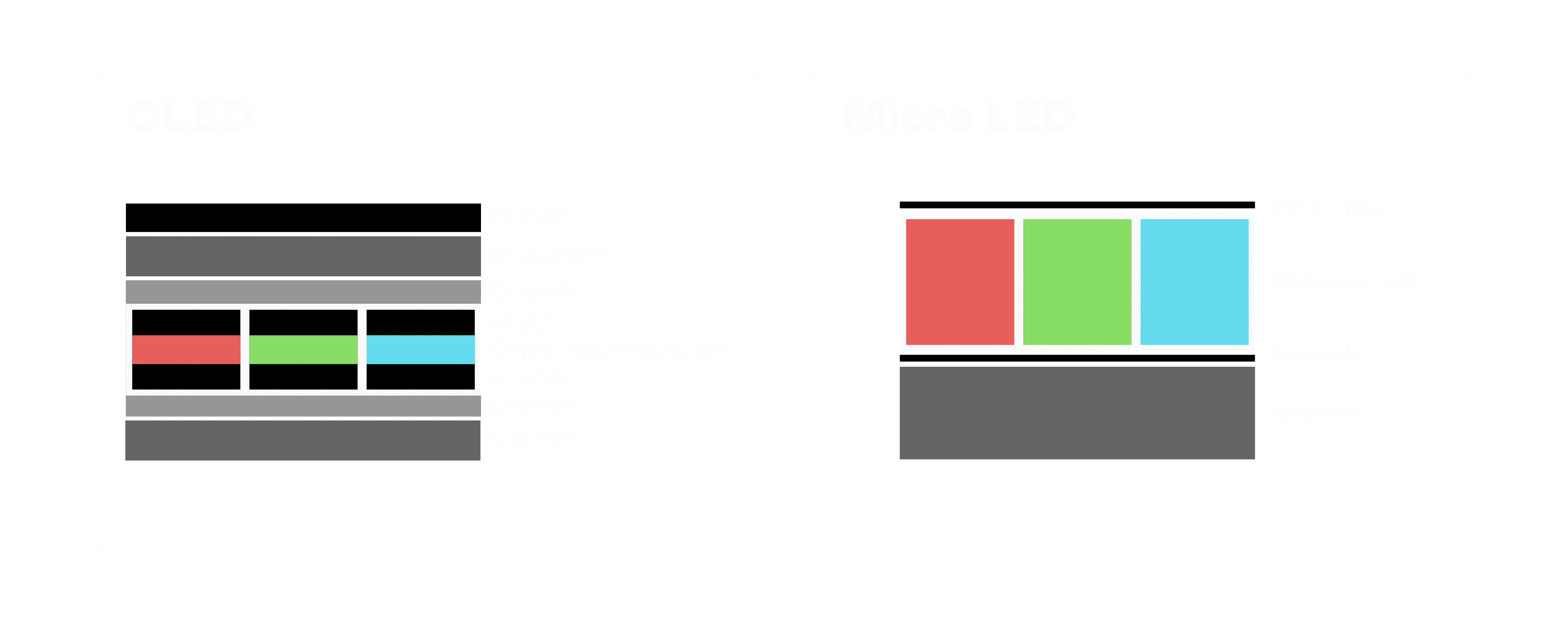 以 LED 做为显示画素,,,,可让 LED 的发光效率发挥到极致,,从而让显示器具备优异的亮度表现,,,,不论是在户外或室内,,,均具备出众的显示效果。。。同时,,,,与使用有机材料的 OLED 相比,,,LED 具备更稳定、、寿命更长的特性,,,不仅不会有画面烙印问题,,,而且更不容易出现故障、、坏点。。。