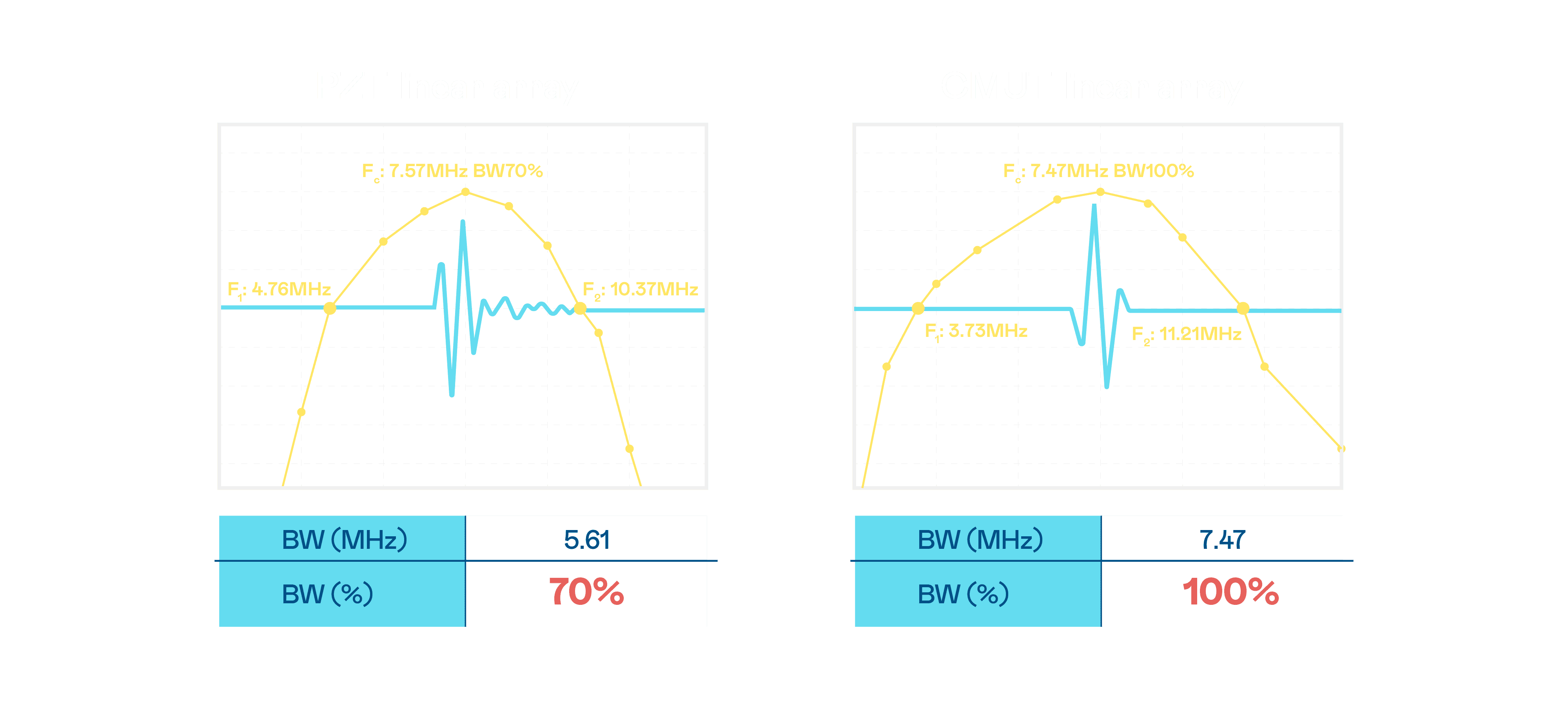 超音波影像的解析度高低,,,首先取决于探头能发出的讯号频宽。。赏金国际 CMUT 可提供高清晰的超音波讯号,,,提供高频宽、、、高灵敏度、、影像纹理细节更高的超音波影像,,,协助医护人员缩短影像判读时间及利用精准的医疗影像进行诊断。。。